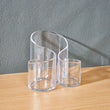 Elevate your vanity with the 3 Compartments Transparent Acrylic Cosmetic Organizer, a sleek and functional solution for tidying up your beauty essentials. Crafted from durable and crystal-clear acrylic, this organizer offers a minimalist yet elegant design that complements any decor. With three spacious compartments, it provides ample storage for makeup brushes, skincare products, lipsticks, and more, keeping them neatly organized and easily accessible. The transparent construction allows you to quickly locate your favorite items while adding a touch of sophistication to your dressing area. Say goodbye to scattered cosmetics and hello to a clutter-free beauty routine with this stylish acrylic organizer.