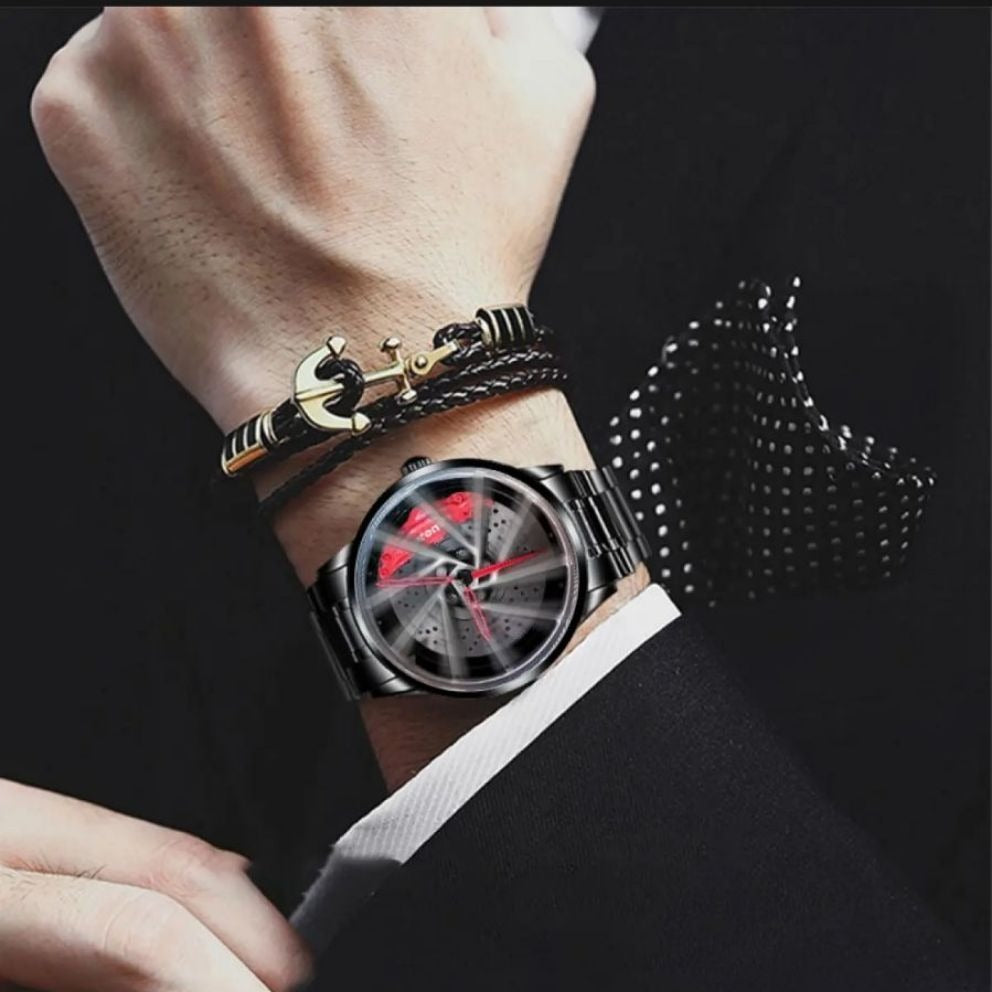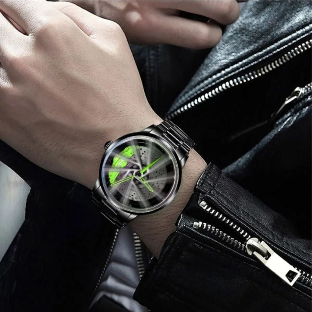 3D Car Hub Skeleton Design Watch Men Rotated waterproof
