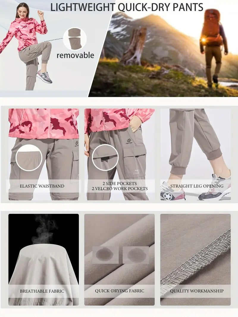 ECTOP Women'S Lightweight Convertible Zipper Hiking Pants with Pockets, Stretchy & Quick-Dry, Beige & Pink Camouflage Design