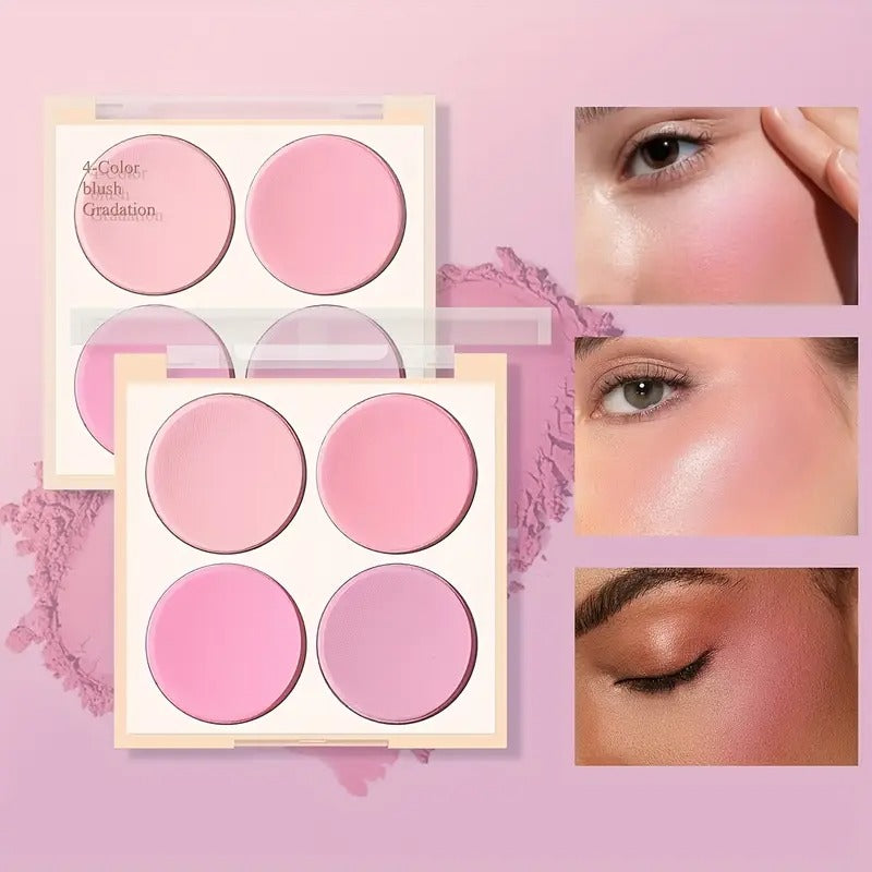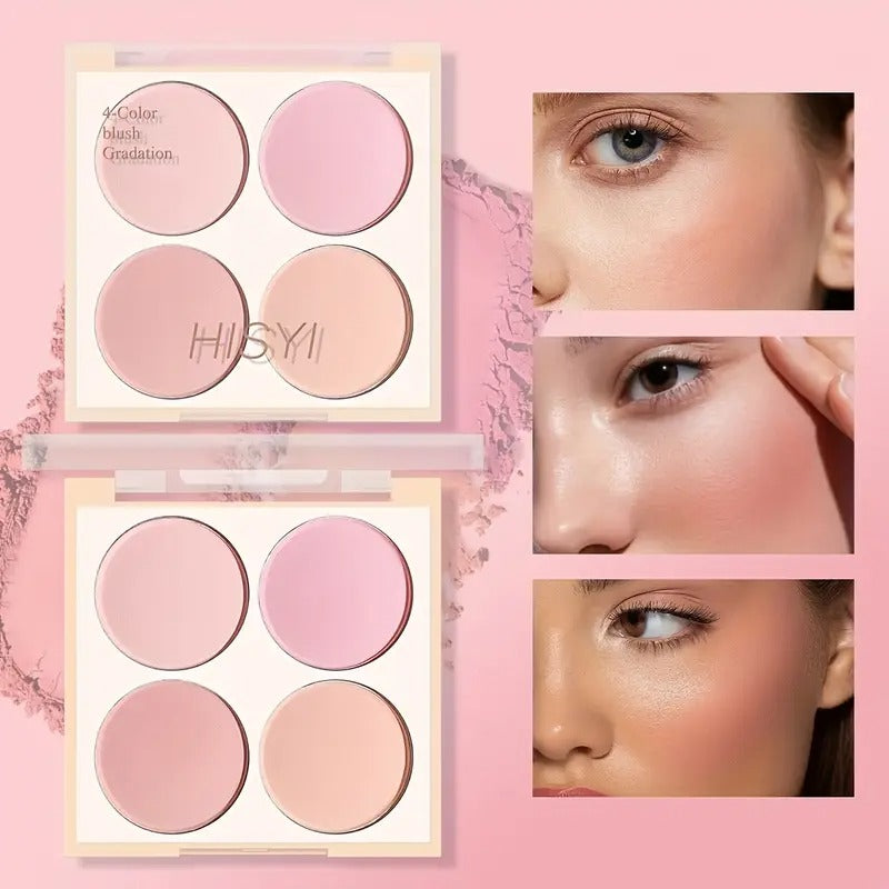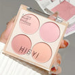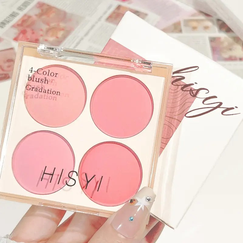 HISYI 4-Color Blush Palette - Low-Saturation Soft Gradient Matte Finish, Light Pink to Purple Shades, Vibrant Yet Natural Look