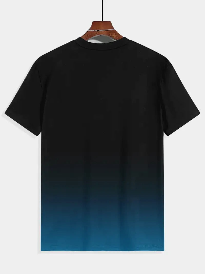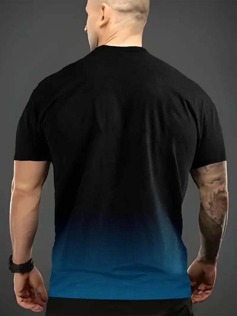 Men's Gradient Black to Blue Short-Sleeve Crewneck T-Shirt - Lightweight Polyester, Summer Casual Wear, Machine Washable